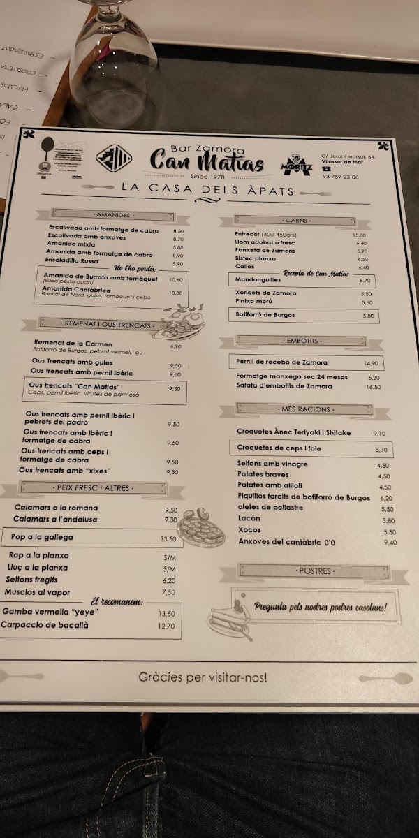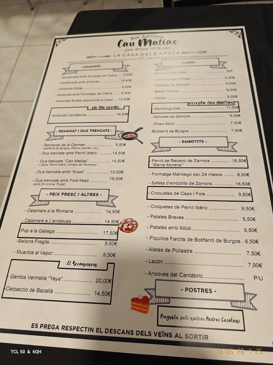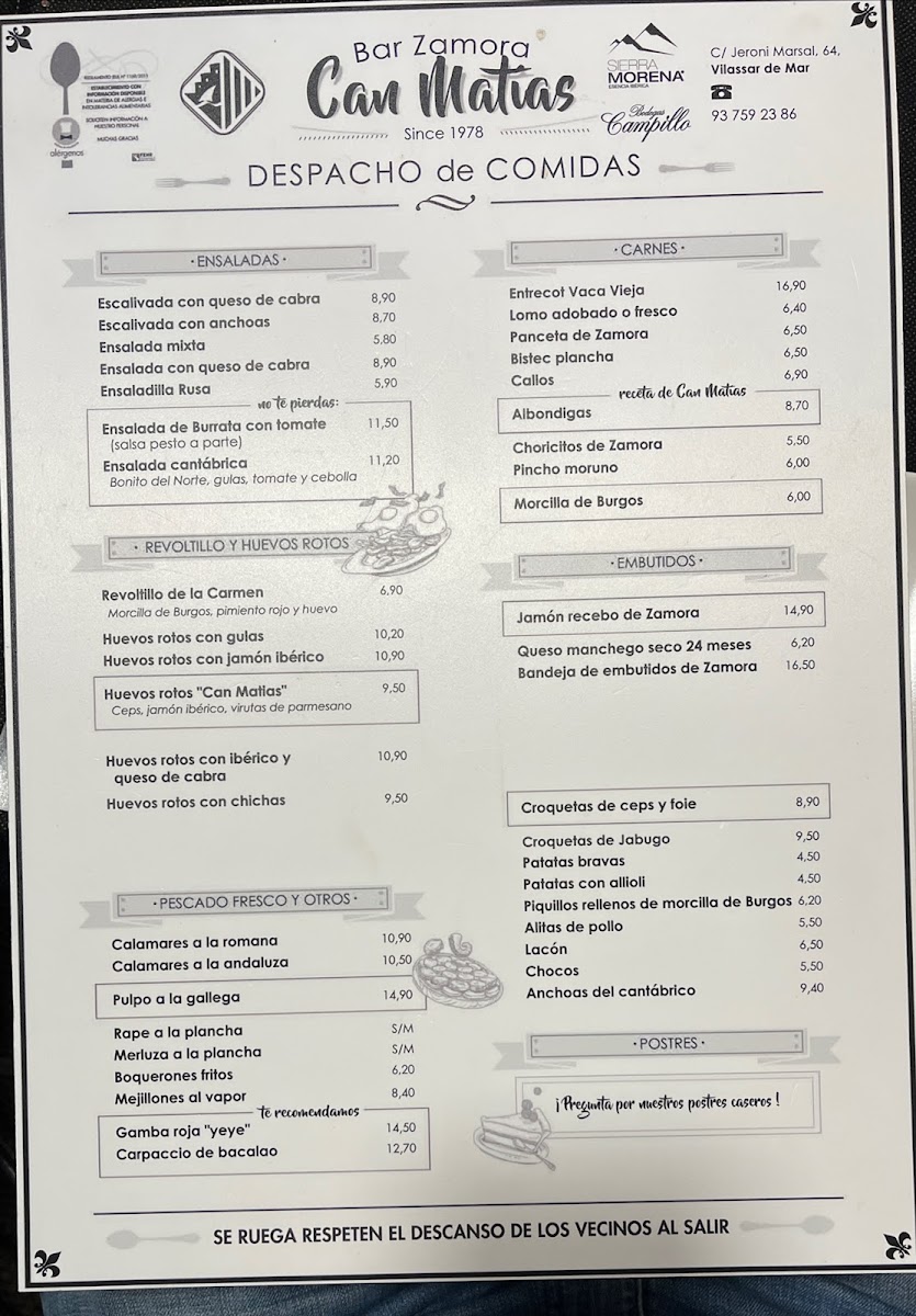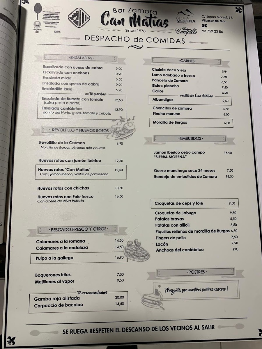 The menu at Can Matías Bar Zamora offers a welcoming blend of traditional Spanish bar and grill favorites, presented with straightforward, satisfying flair. It’s a place to enjoy casual bites and comforting dishes that pair naturally with relaxed conversation and the easy rhythms of a neighborhood gathering spot.